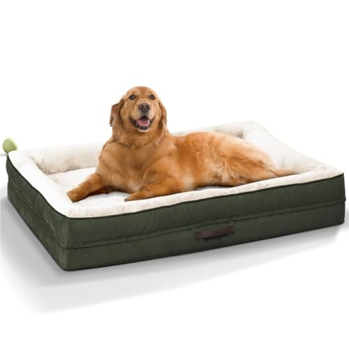 Renvix XXL Orthopedic Dog Bed, Waterproof Dog Sofa Bed with Removable Washable Cover, Soft Egg Foam Pet Bed, Non-Slip Bottom and Four-Sided Bolster Cushion(Pitch Green, 137x91x19cm)