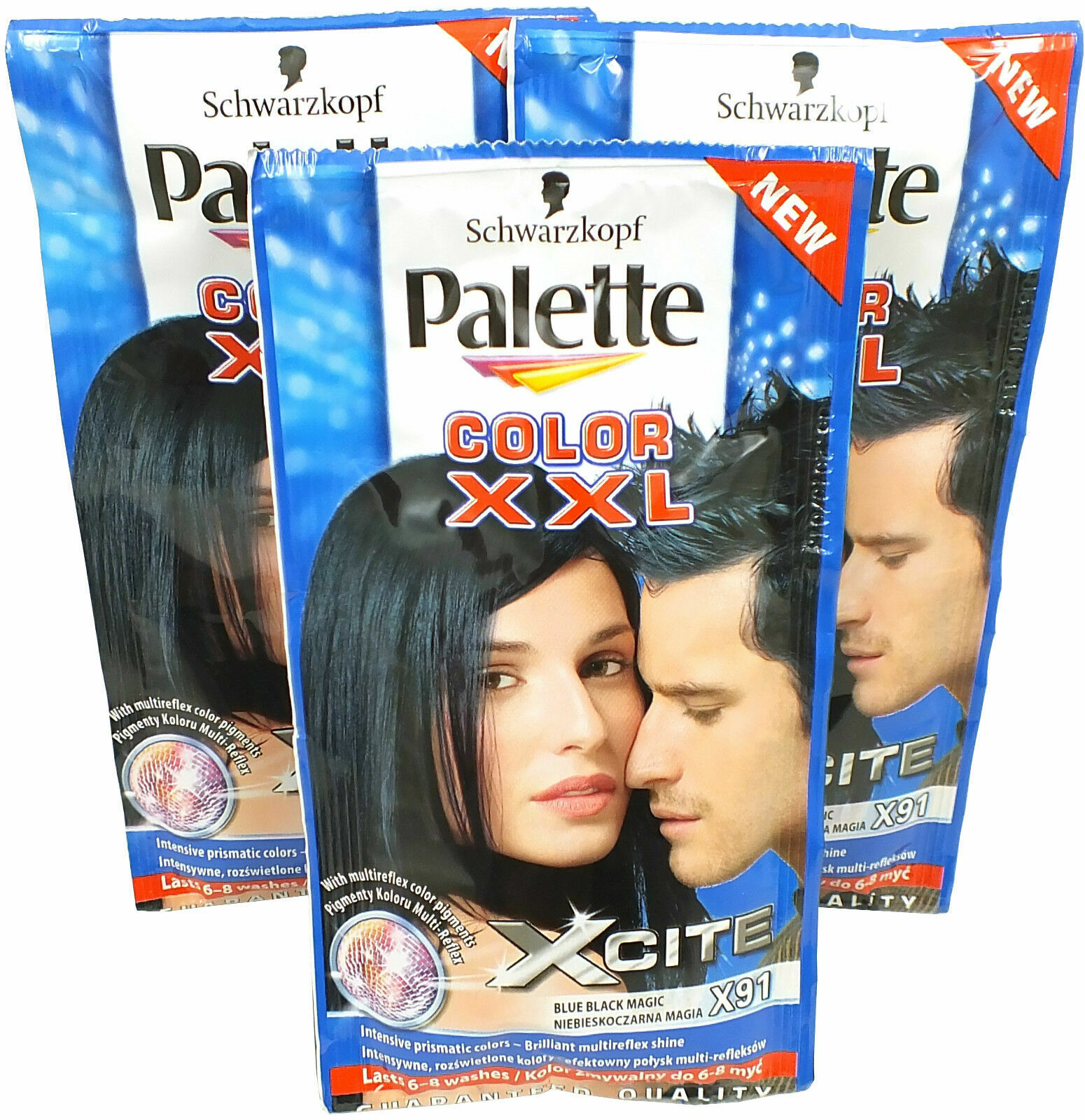3x Schwarzkopf Blue Black Magic X91 Palette Color XXL Xcite 25ml - Hair Colour
