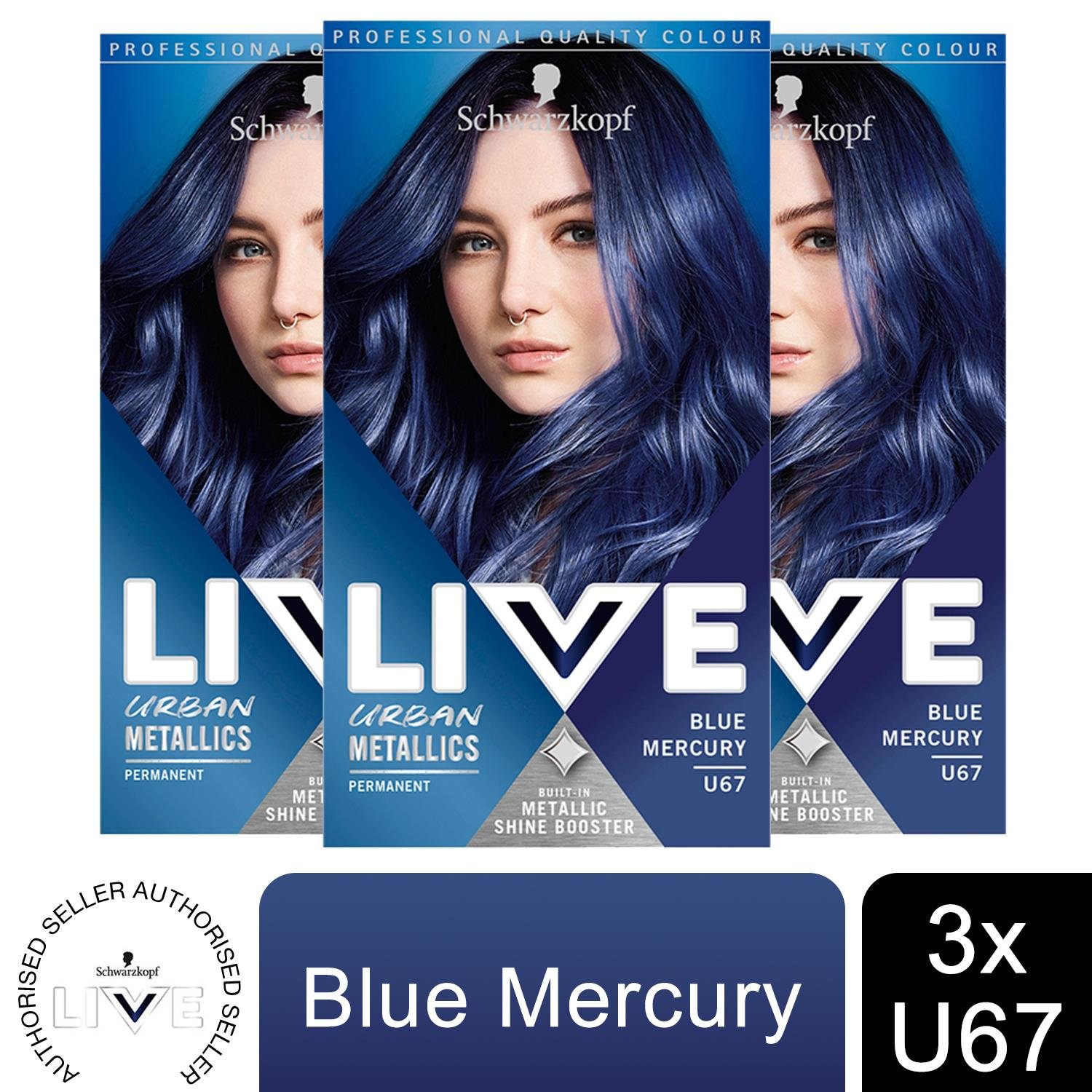 3 x Schwarzkopf Live Permanent Hair Dye BLUE MERCURY U67 Women Hair Colour