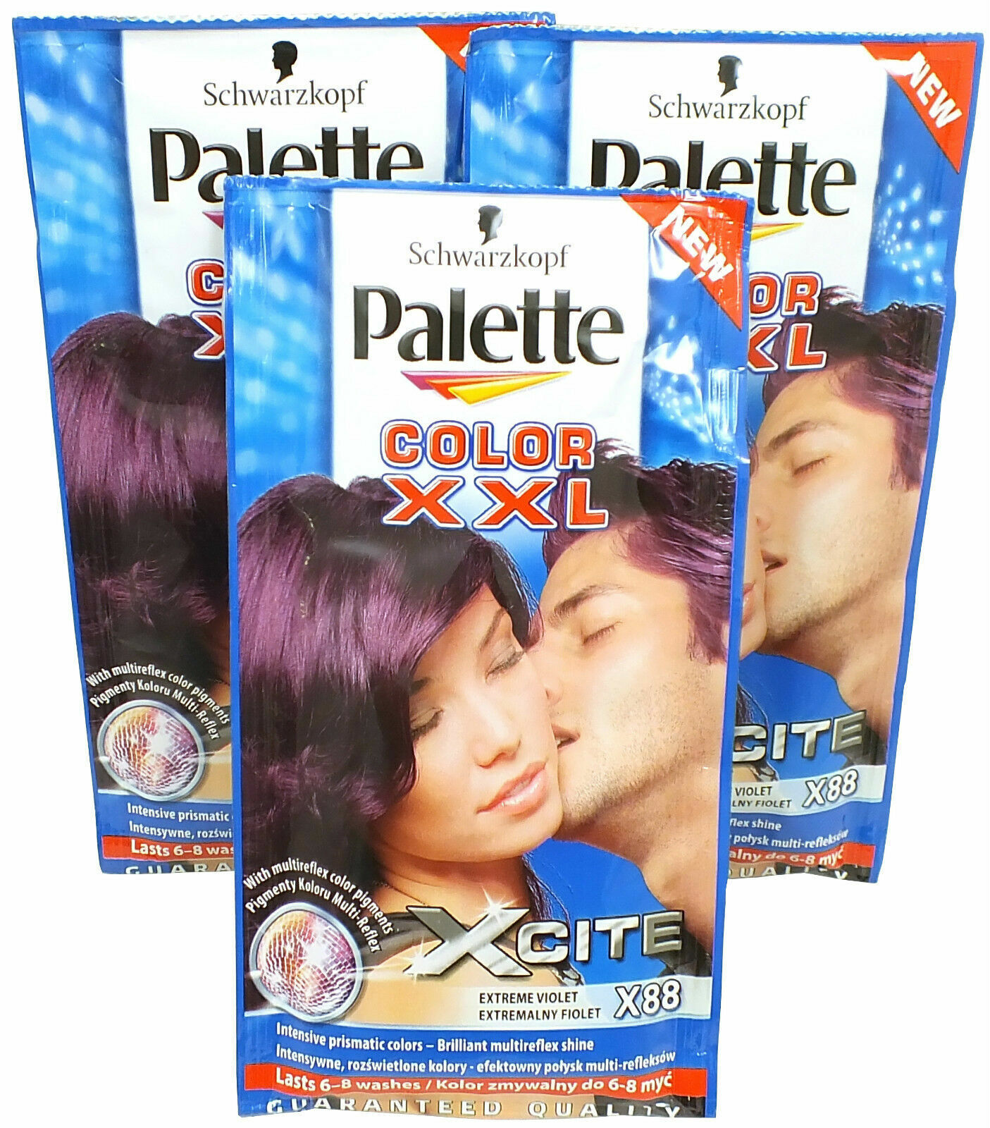 3x Schwarzkopf EXTREME VIOLET X88 Palette Color XXL Xcite 25ml - Hair Colour