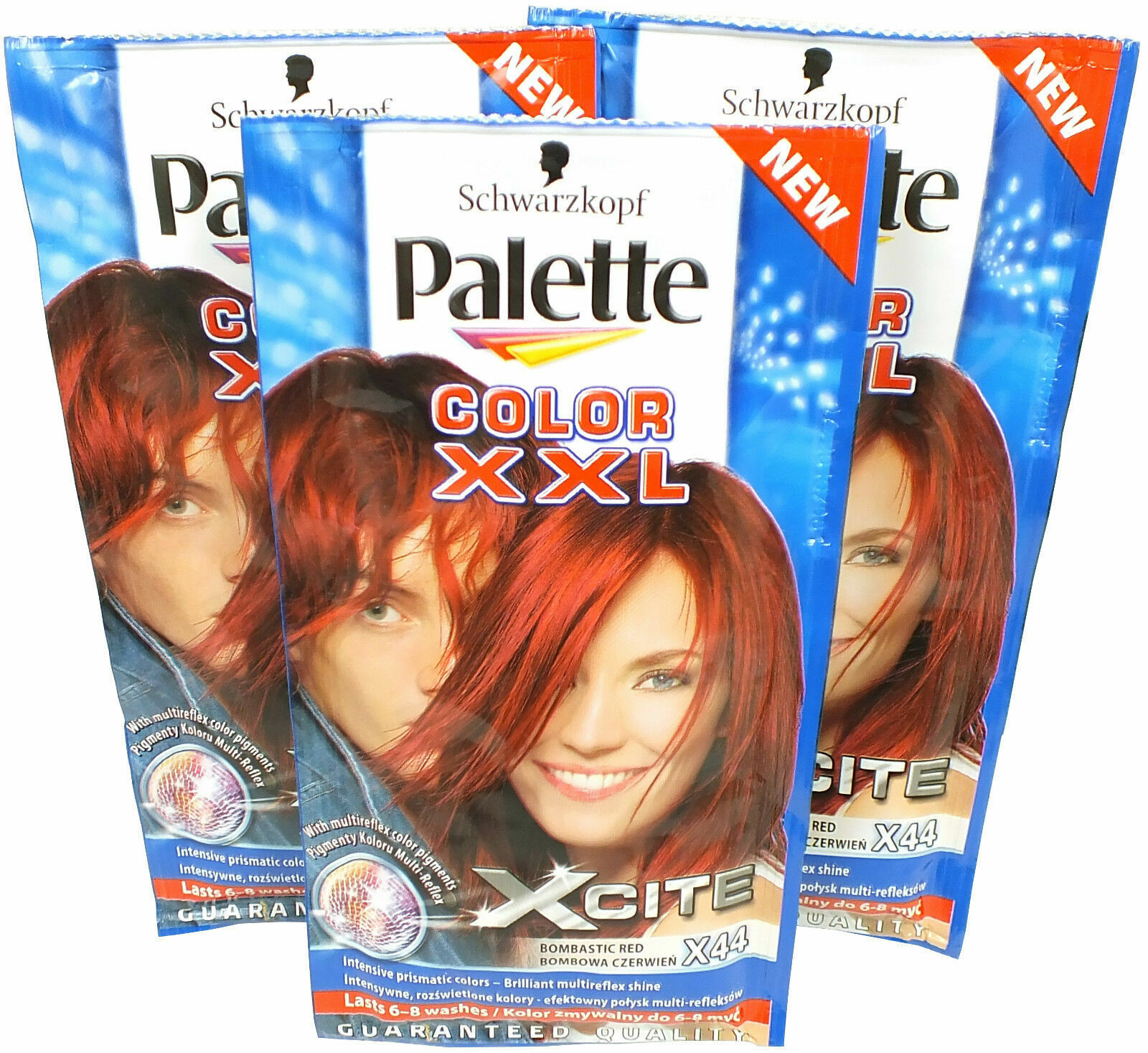 3x Schwarzkopf Bombastic Red X44 Palette Color XXL Xcite 25ml - Hair Colour