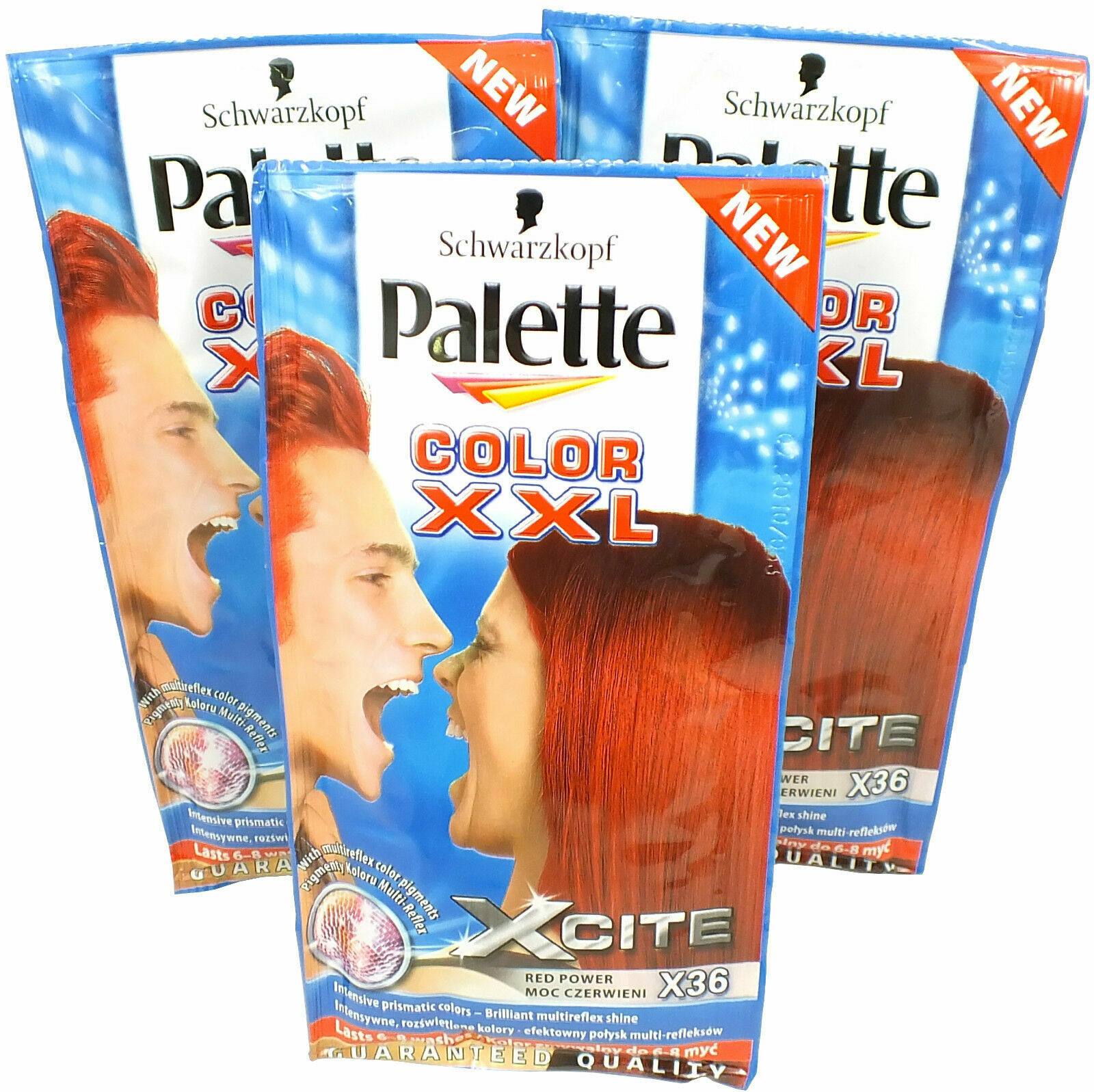 3x Schwarzkopf Red Power X36 Palette Color XXL Xcite 25ml - Hair Colour