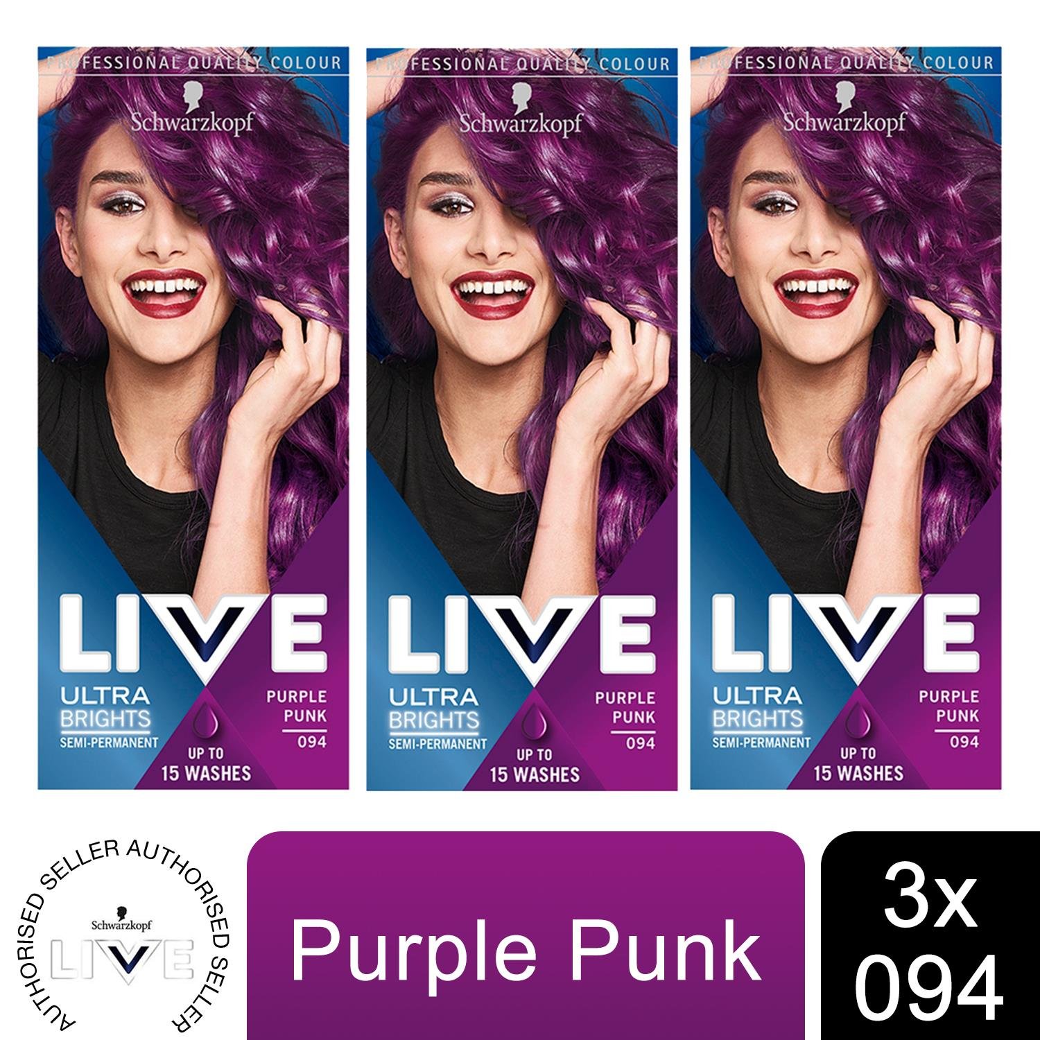 Schwarzkopf LIVE Purple Punk 094 SemiPermanent Hair Dye Colour Pack of 3
