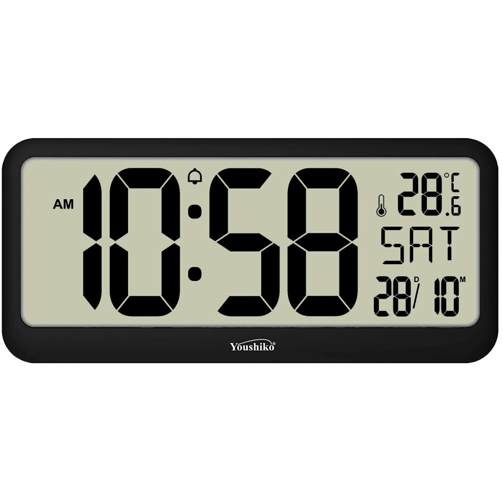 Youshiko Extra Large XL Jumbo Radio Controlled Digital Silent Wall Clock (Official UK Version) XXL Bold Time Digits (Clock Size: 37.5 x 16.5 x 2.5 cm)