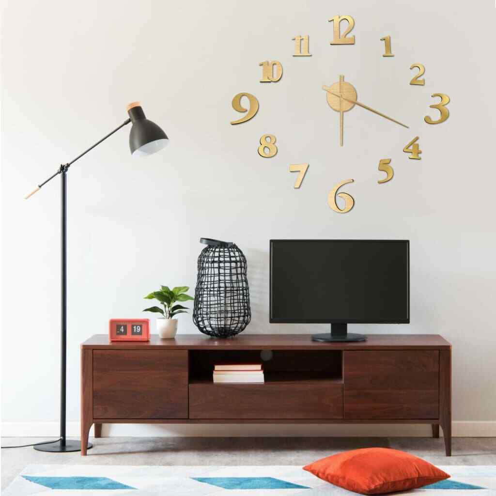 (gold) vidaXL 3D Wall Clock Modern Design XXL Analog Clock Living Room Multi Colours