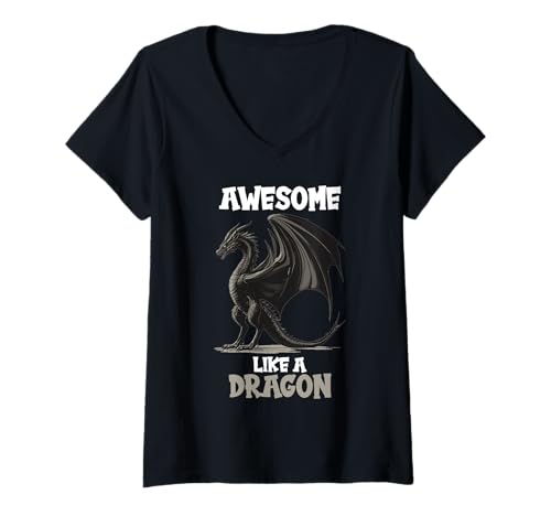 Womens Awesome Like a Dragon. Dragons Dragon V-Neck T-Shirt