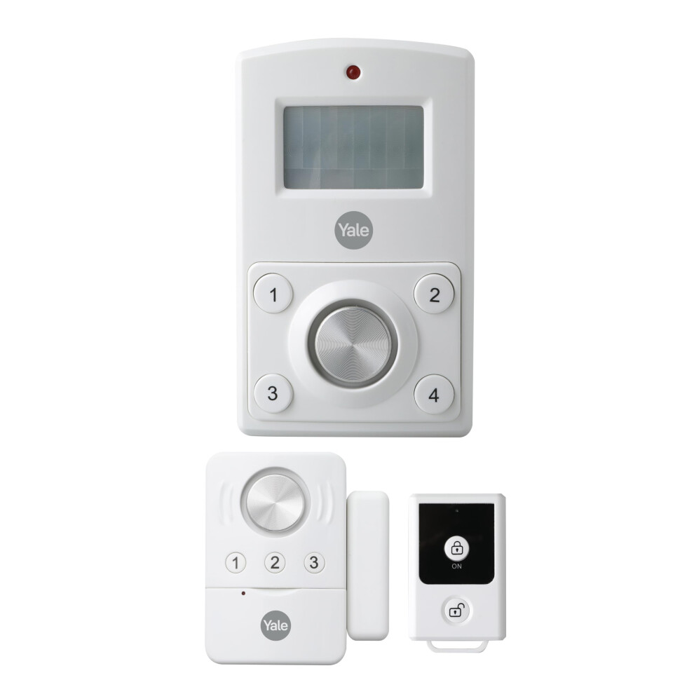 Yale Mini Wireless Alarm Kit - 130 dB siren, Motion Detector, 4 digit PIN Code, Door Contact, Key Fob with 70 m range, Battery Powered