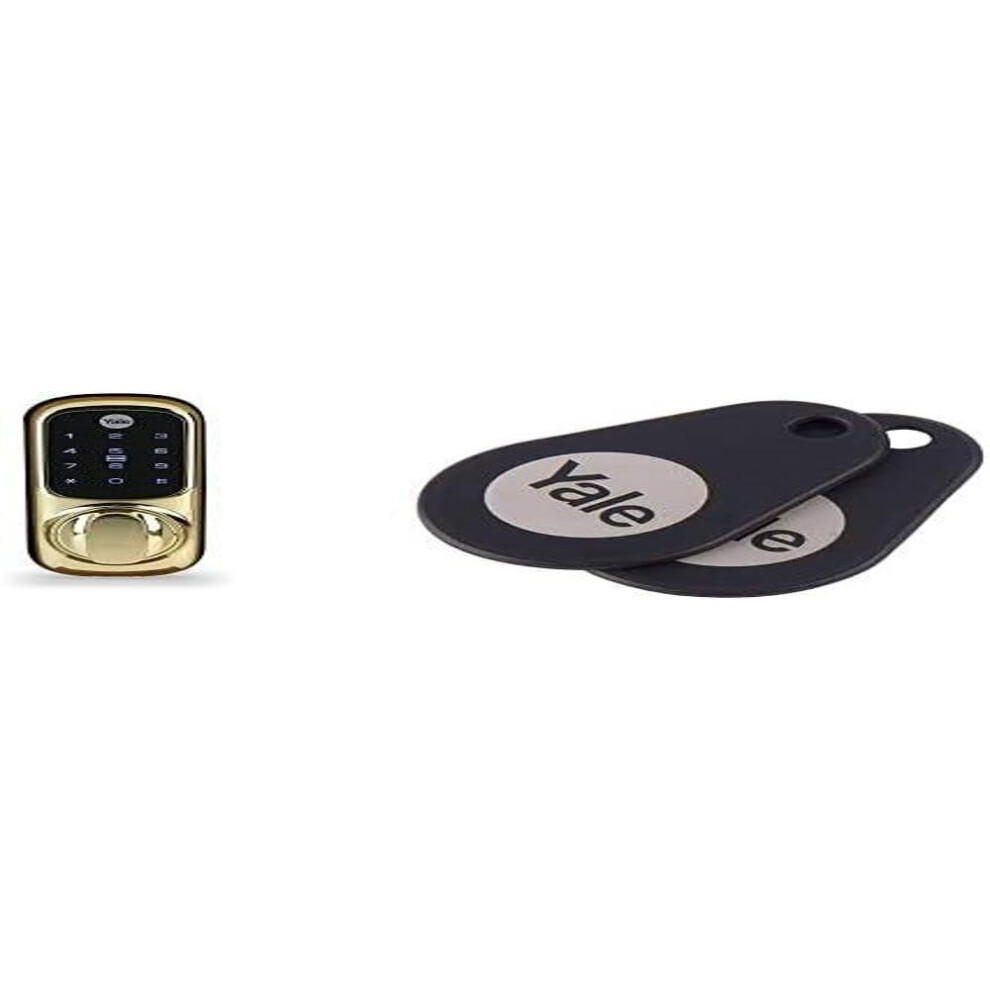 Yale Smart Living Keyless Connected Ready Smart Door Lock, Touch Keypad, Compatible with Alexa, Polished Brass & Black RFID Key Tags, Pack of 2