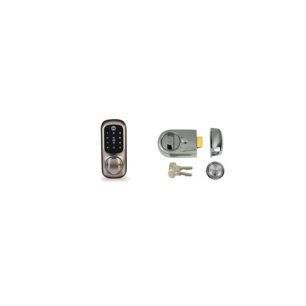 Yale Smart Living YD-01-CON-NOMOD-SN Keyless Connected Ready Smart Door Lock, Touch Keypad, Compatible with Alexa, Satin Nickel & P-89-CH-CH-60 Deadlocking Nightlatch, 60 mm Backset