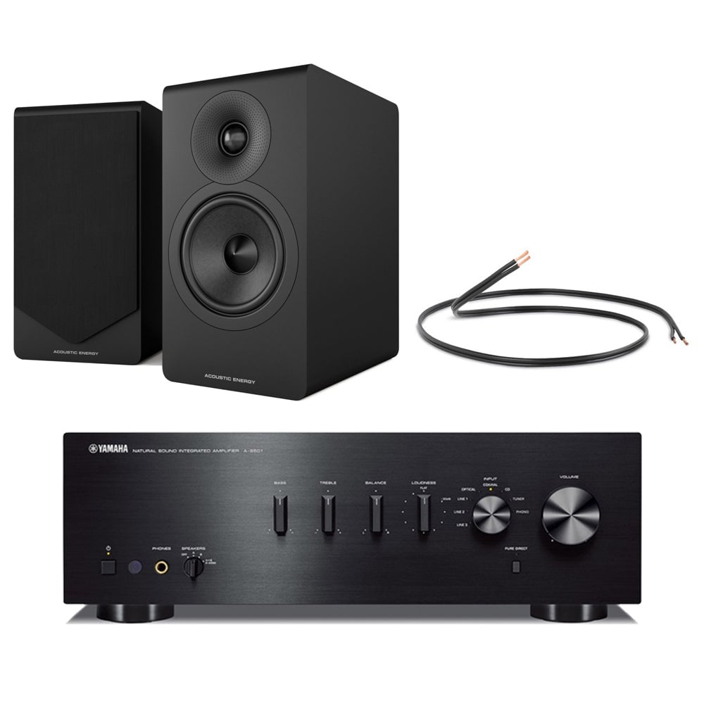 Yamaha AS501 Integrated Stereo Amplifier with Acoustic Energy AE100 MK2 Bookshelf Speakers Pair Black HiFi Package