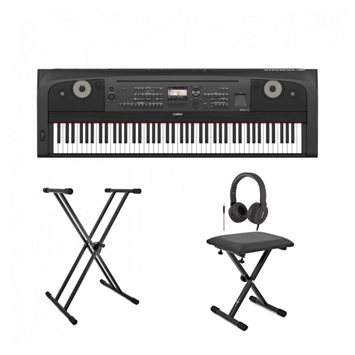 Yamaha P-225 Digital Piano with 88 Graded Hammer Compact Keys and 24 Instrumental Voices & RockJam XX-363 Xfinity Doublebraced Pre Assembled Keyboard Stand with Locking Straps & Lessons.,Black