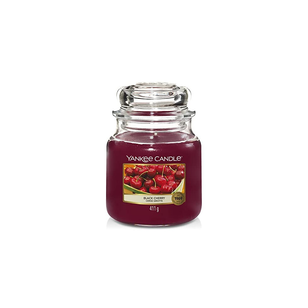 Yankee Candle Scented Candle | Black Cherry Medium Jar Candle| Burn Time: Up to