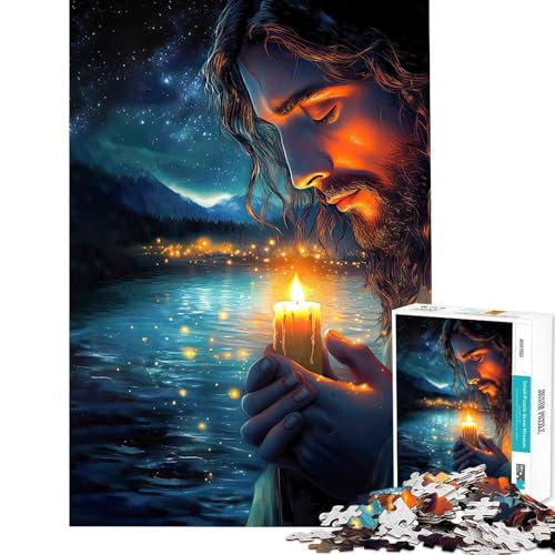1000 Piece Teenager Puzzles Jesus Holding A Candle Build Hand Dexterity Flawless Cut Fun Peace Game Play Christmas Calm Gift (38x52cm)