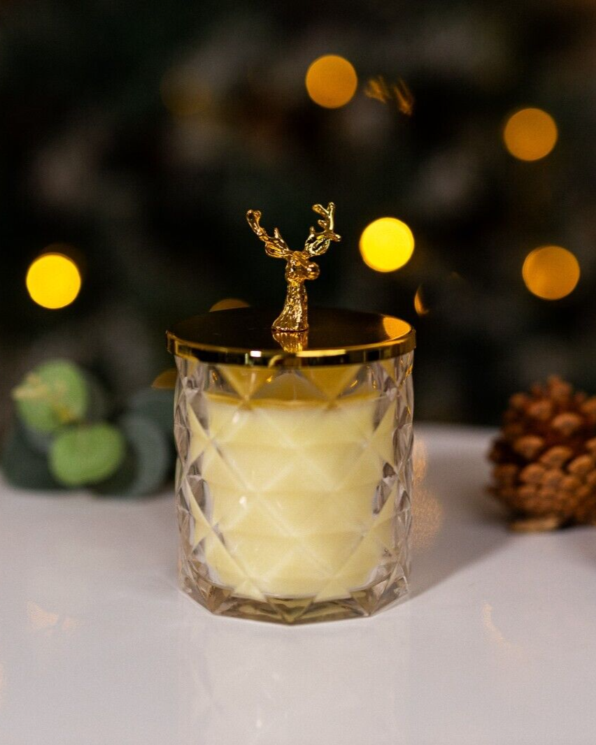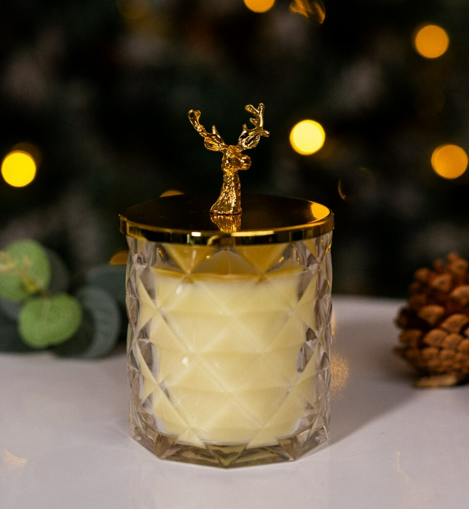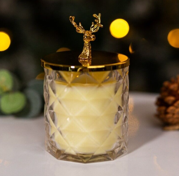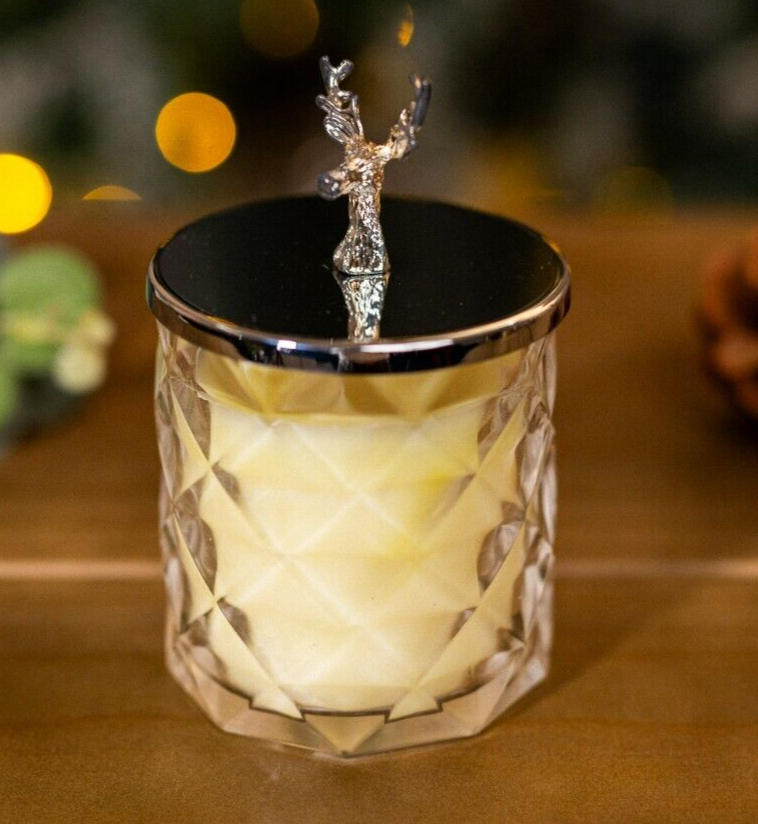 Christmas Scented Candle Decoration Gold Stag Lid Lemon Lavender Xmas Fragrance