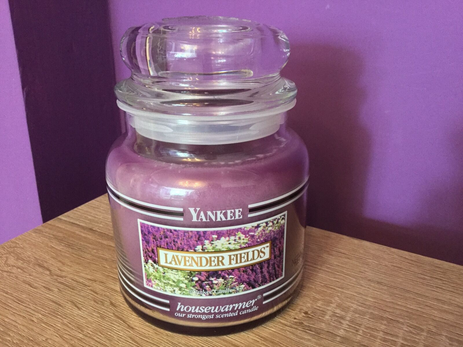 Rare Yankee Candle, Lavender Fields 14.5 Oz Jar, Black Band, Deerfield.