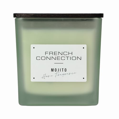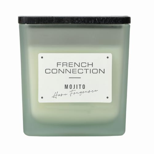 French Connection Scented Candle | Shea Butter Wax | Frosted Glass Jar Wooden Lid | Square Shape | (XL,Mango Motijo Scent)