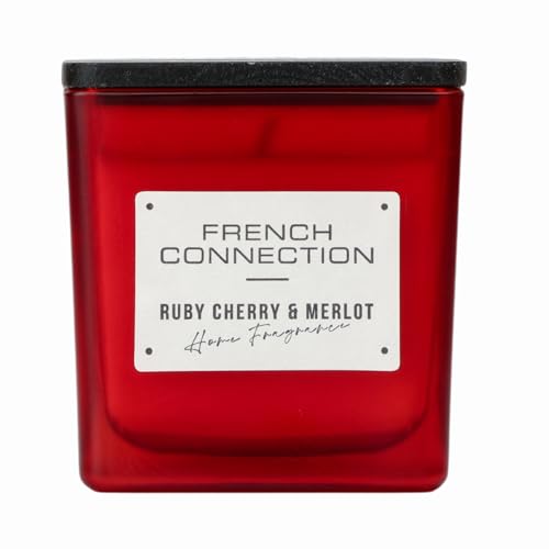 French Connection Square Range Scented Candle & Reed Diffuser Gift Set | 220g Shea Butter Wax Candle & 100ml Diffuser | Glass Jar Design | 37-Hour Burn Time | Gift Box (Ruby Cherry & Merlot)