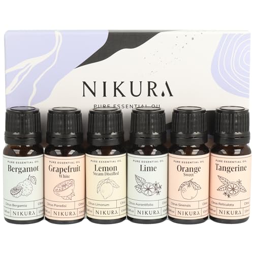 Nikura Citrus Essential Oil Gift Set - 6 x 10ml | Essential Oils for Diffusers for Home, Aromatherapy, Cleaning, Candle Making, Soap Making | Bergamot, Lemon, Lime, Sweet Orange | 100% Pure & Natural