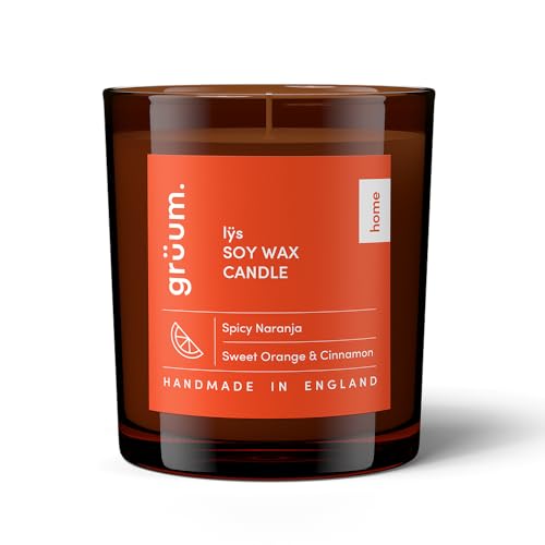 grüum 170g Soy Wax Scented Candles - 100% Soy Candle with up to 40 Hours Long Burning Time - Candles Gifts for Women - Hand Poured UK Made Scented Candle with Sweet Orange & Scintillaing Cinnamon