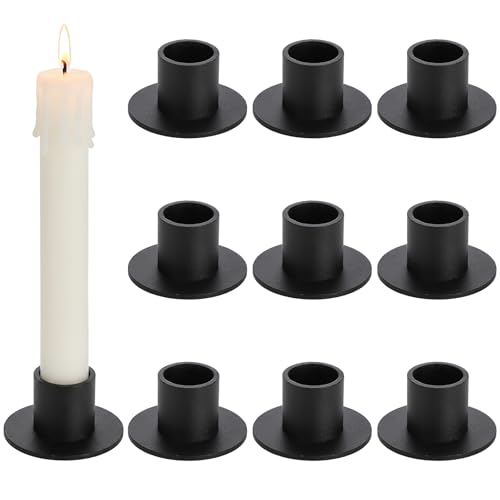 ZENFUN 10Pcs Black Candle Holders, Metal Taper Candle Stand, Retro Taper Candle Holder Round Candle Sticks Holder Set for Valentine's Day, Wedding Party, Dinner Tabletop Decor
