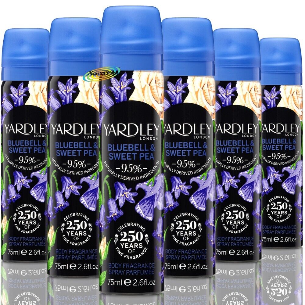 6x Yardley London BLUEBELL & SWEET PEA Body Spray 75ml