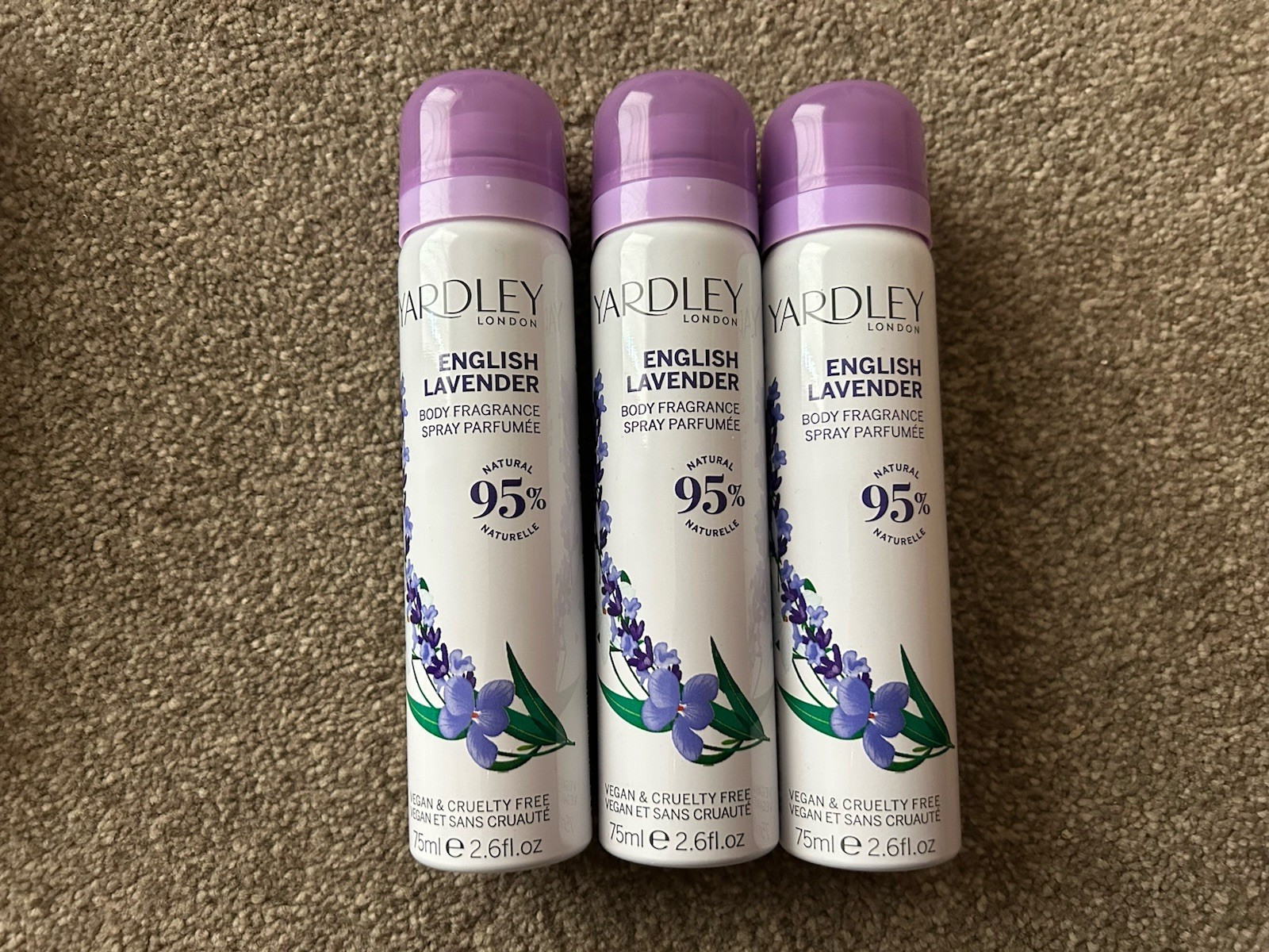 Yardley ENGLISH LAVENDER Body Spray Fragrance 3 x 75ml Vegan FREEPOST