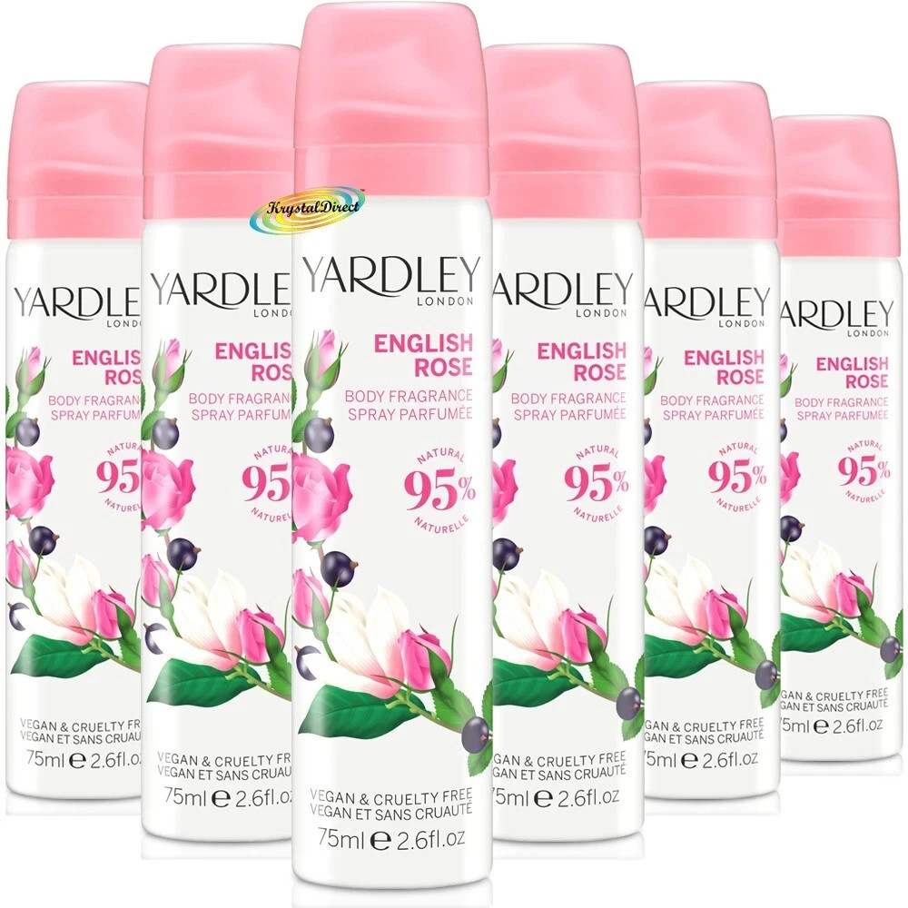 6 X Yardley ENGLISH ROSE Fragrance deodorising Perfumed Body Spray 75ml each