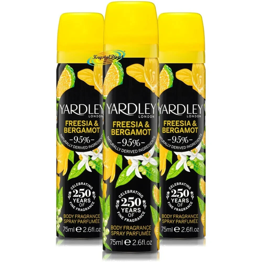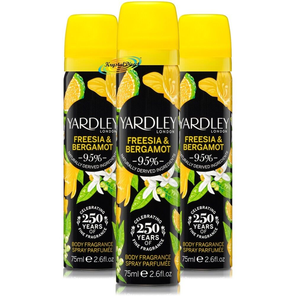 3x Yardley London FREESIA & BERGAMOT Body Spray 75ml
