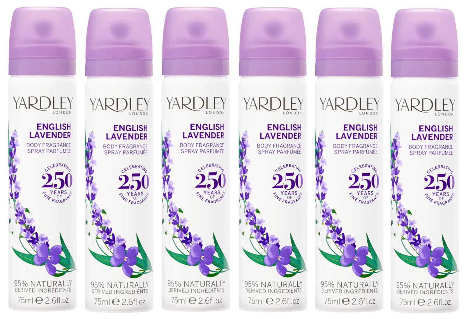 6 X Yardley ENGLISH LAVENDER Body Spray Fragrance 75ml