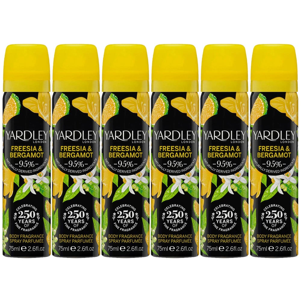 6 x YARDLEY LONDON FREESIA & BERGAMOT BODY SPRAY 75ml