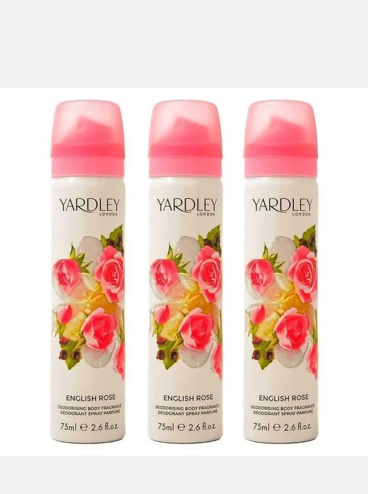 3x Yardley London ENGLISH ROSE Body Spray 75ml