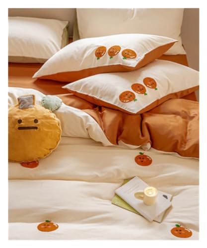 HXFFXHF Double Yarn Cotton Bedding Set Lovely Cartoon Embroidery Queen Duvet Covet Set Cotton Air-Permeable Bed Sets(F,King Size 4 pcs)