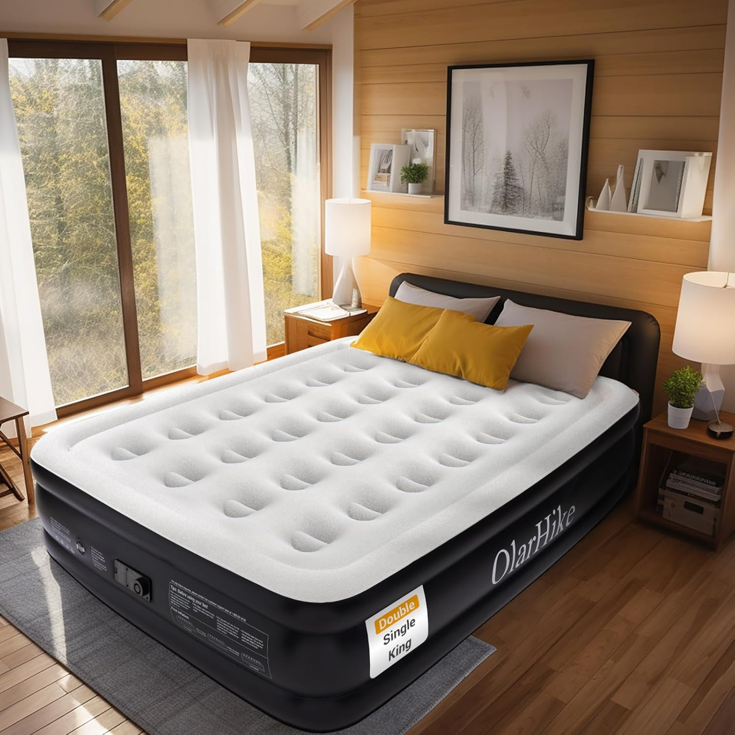 OlarHike Super King Size Airbed, Inflatable Mattress, Air Bed with Built in Pump, Blow Up Mattress, Folding Guest Bed Self Inflating with Flocked Surface for Camping and Home Use, 213cm x 182cm x 46cm
