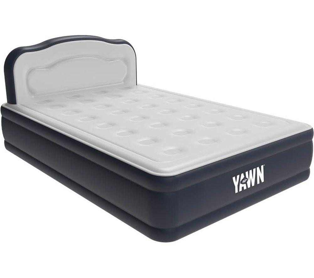 YAWN AIR Deluxe Self-Inflating Airbed with Custom Fitted Sheet Included - Double Size - Great Guest Bed, Camping Mattress - Built-in Pump & Headboard - Available in UK Single, Double & King