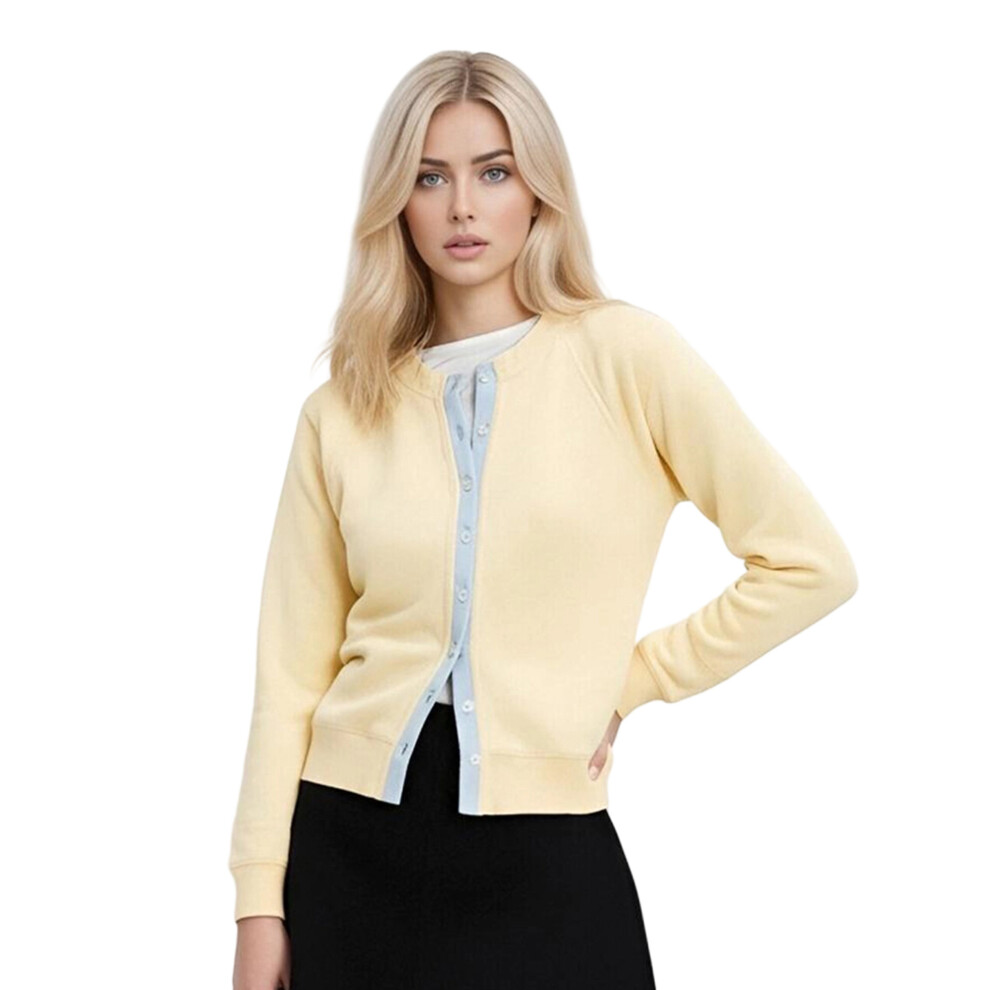 (Yellow L) Women Cardigan Long Sleeve Button Down Knitwear Green XXL