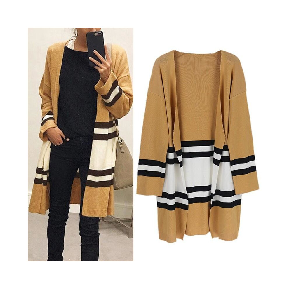 new Autumn and winter Yellow sweater cardigan Europe Printed Striped coat ladies loose sweater