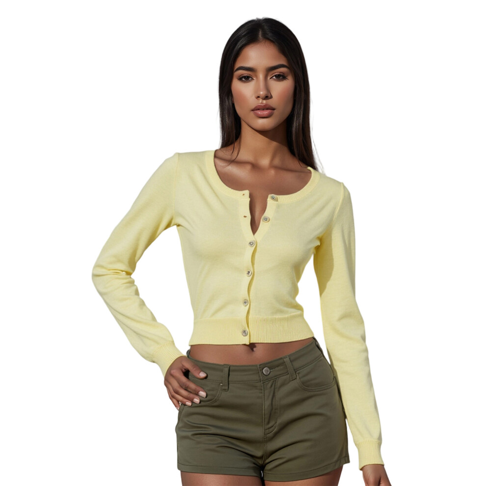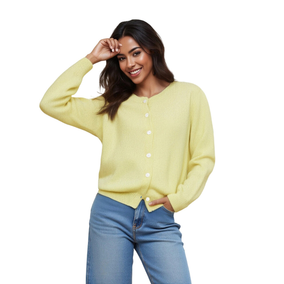(Yellow S) Women Cardigan Long Sleeve Button Down Knitwear Green XXL