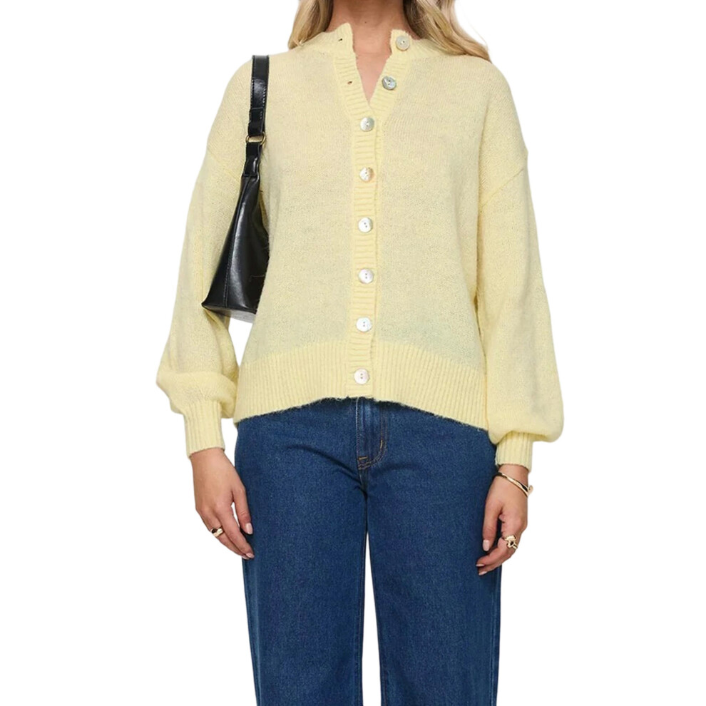 Boohoo Womens Balloon Sleeve Button Through Rib Cardigan - Yellow - Size Small