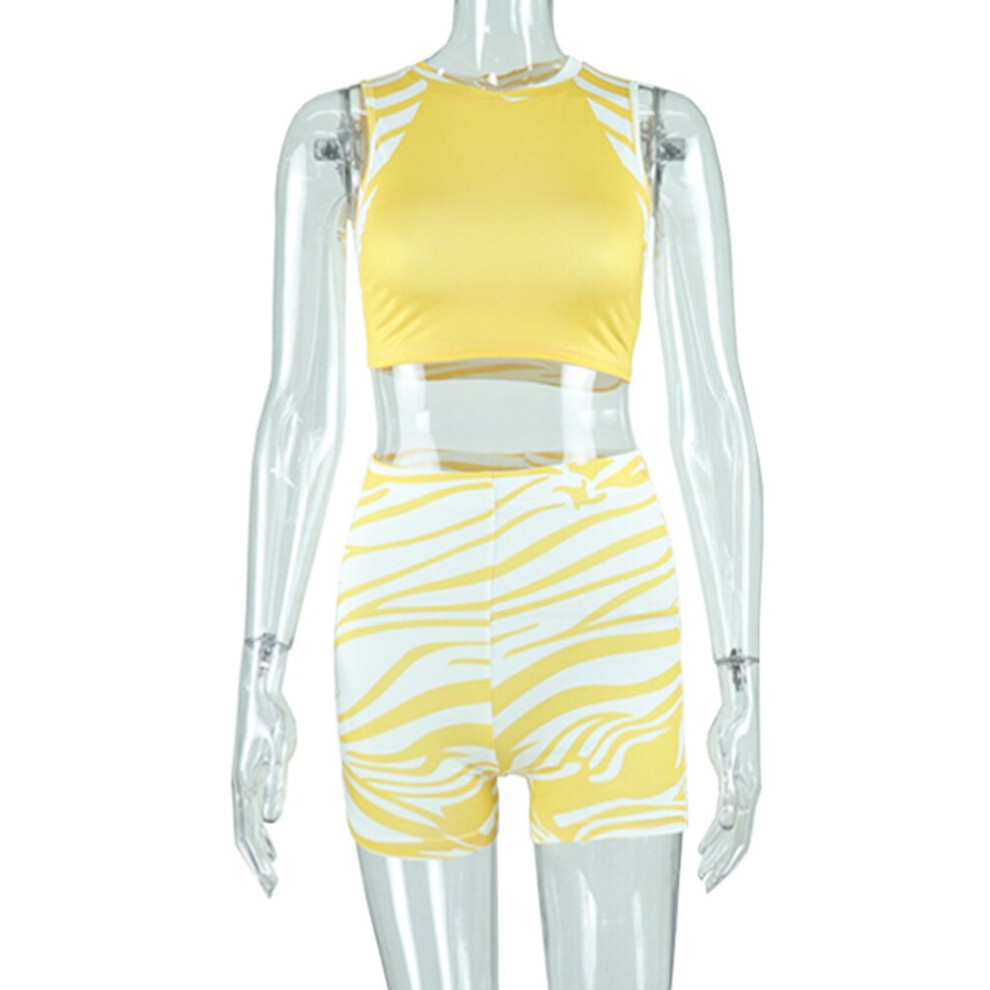 Joskaa Stripe Yellow Crop Tank Top and High Wasit Shorts 2 Piece Sets Womens Outfits Summer Streetwear Tracksuit