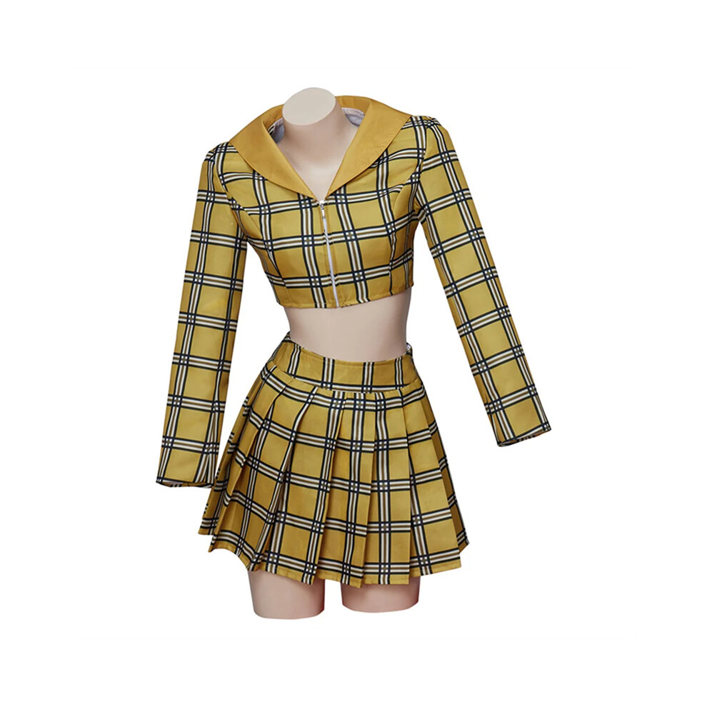 (S) Clueless Cher Cosplay Yellow Plaid Crop Top Skirts