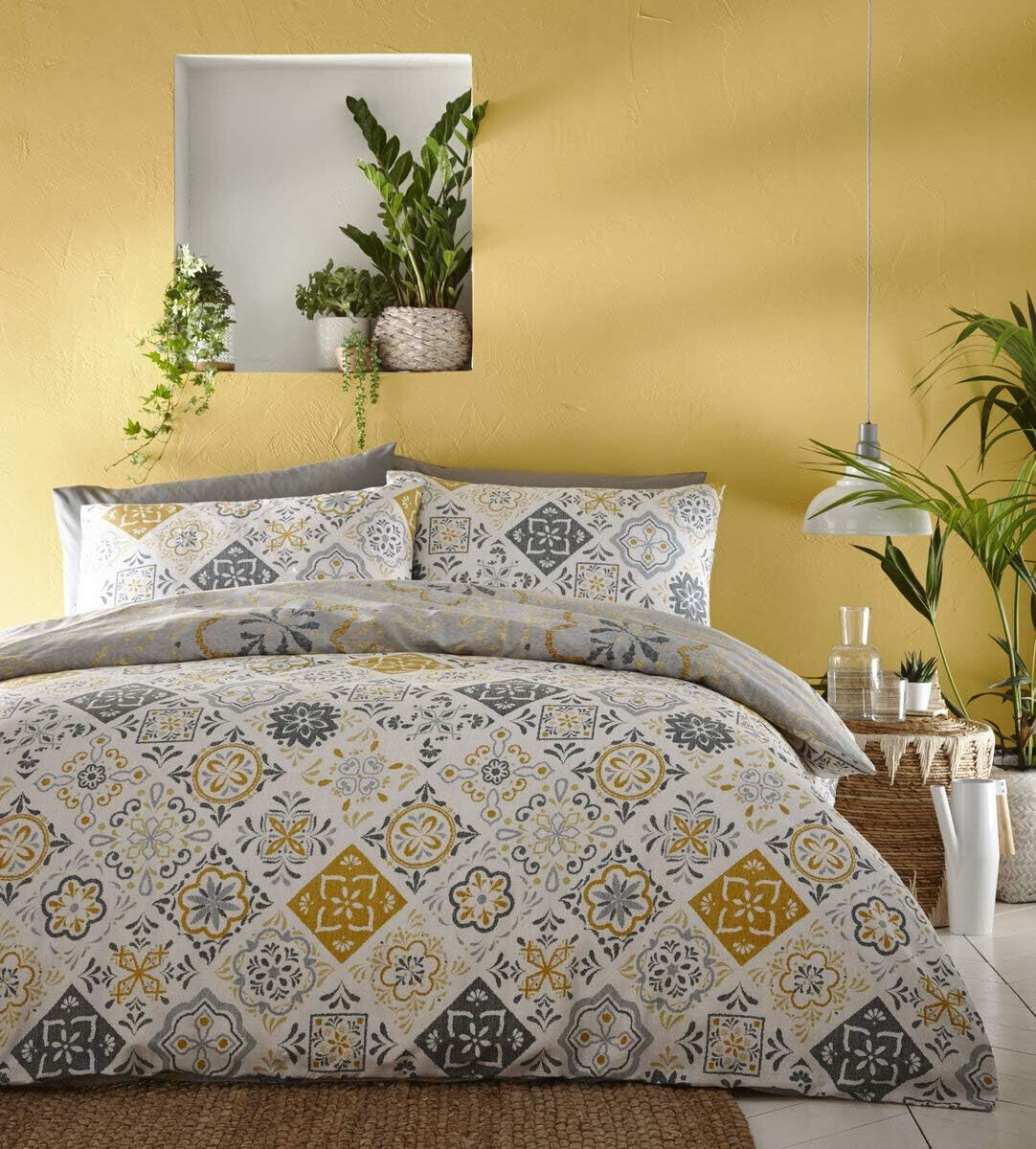 Portfollio Morocco Ochre Yellow Duvet Cover Reversible Bed Set Double Bed Size