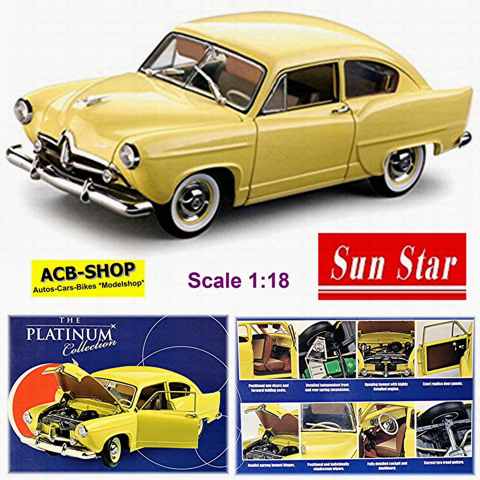 Kaiser Henry J Limousine 1951 Gelb Yellow 1:18 Sun Star Platinum Collection 5091