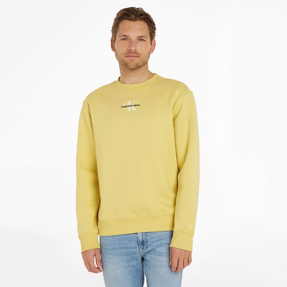 Calvin Klein Jeans Mens Yellow Mono-Logo Crewneck Sweatshirt