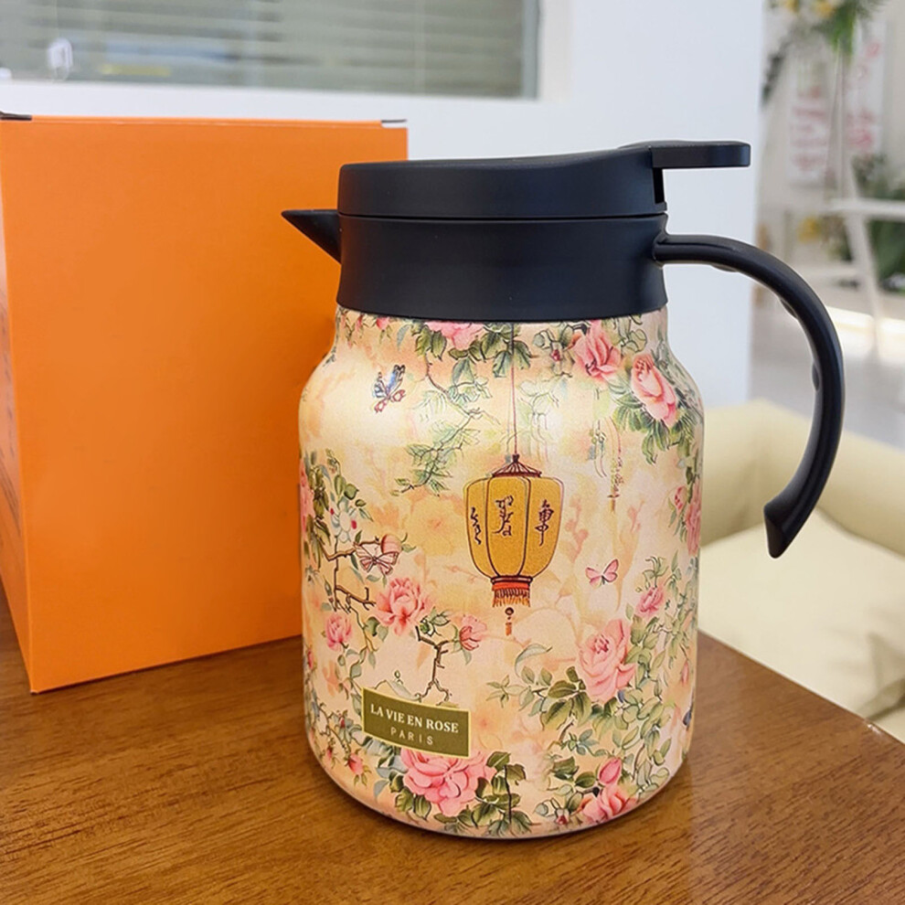 Stainless Steel Vacuum Jug Insulated Thermal Kettle Yellow For Home Use Leak-Proof Keeps Warm For Coffee Tea Beverage