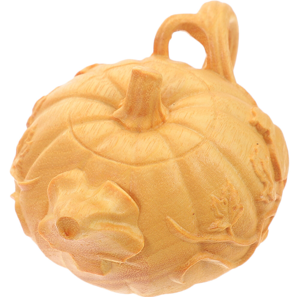 Yellow Wooden Pumpkin Kettle Statue Delicate Carved Home Decor