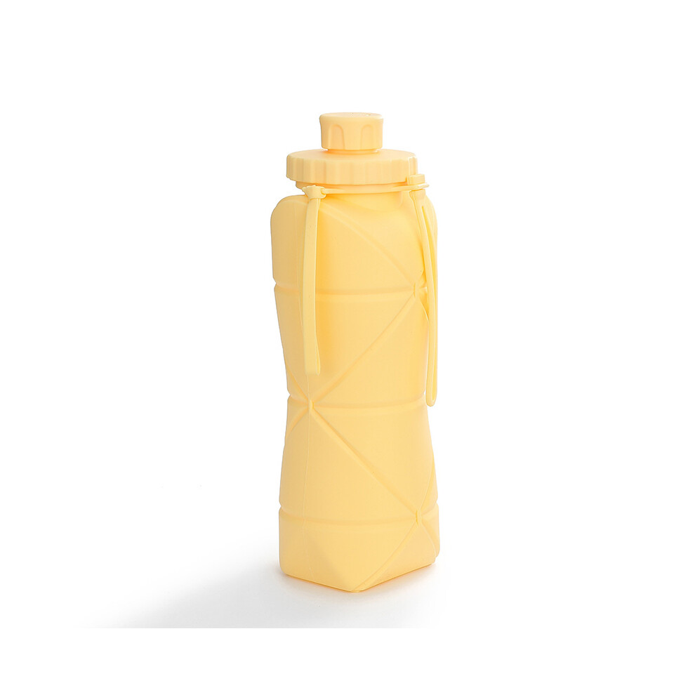 (600ml- Yellow) Silicone Folding Cups Large-capacity Outdoor Travel Portable Sports Kettles
