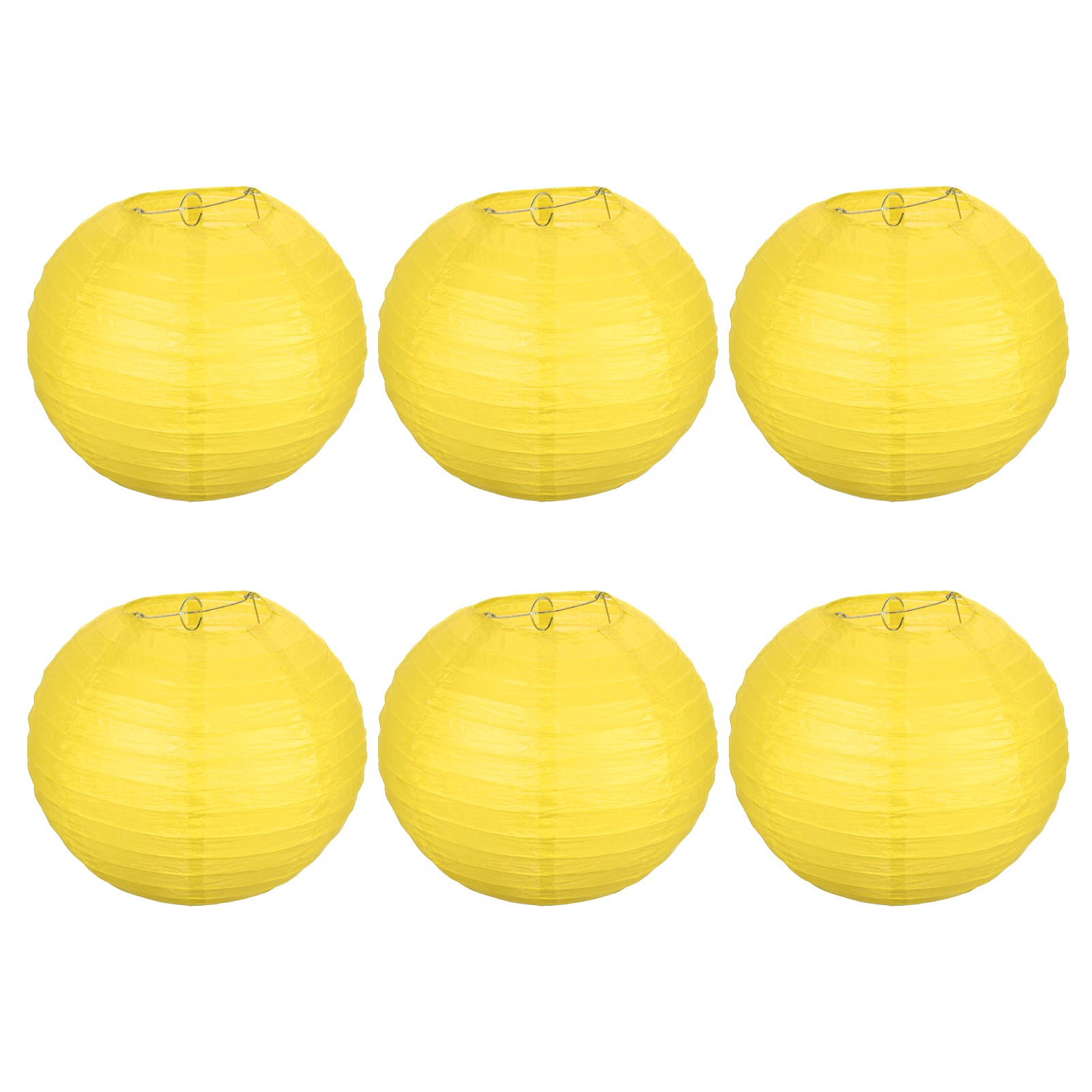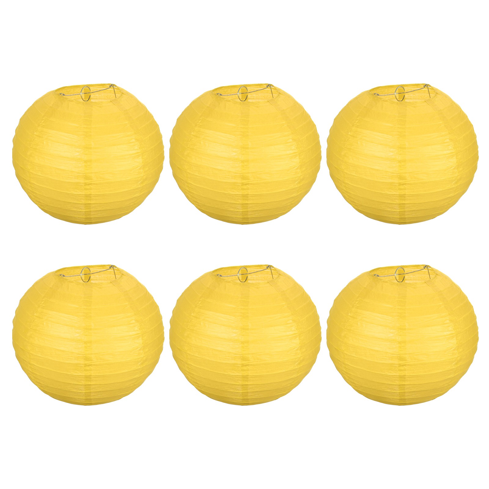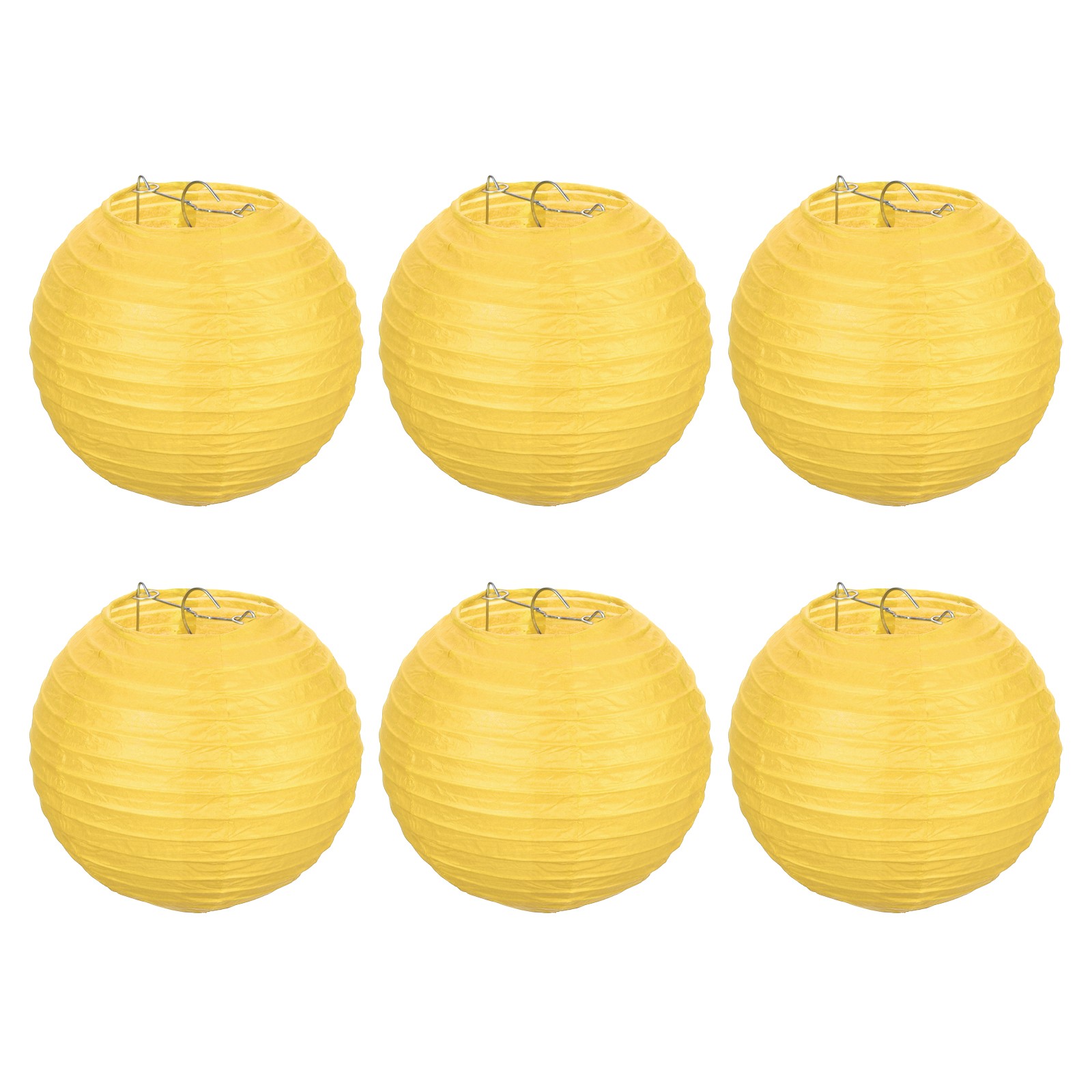 6pcs 8 Inch Folding Hanging Paper Lanterns Medium Lampshade Yellow
