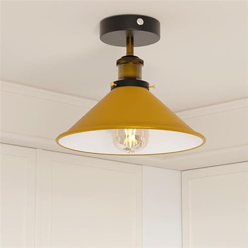 LEDSone Vintage E27 Flush Fitting Ceiling Light with 22cm Yellow Conical Lampshade Easy to Fit Premium Quality Metal Ceiliing Mount Lighting Fixtures for Hallway, Bedroom, Foyer with EPC A+ Bulb