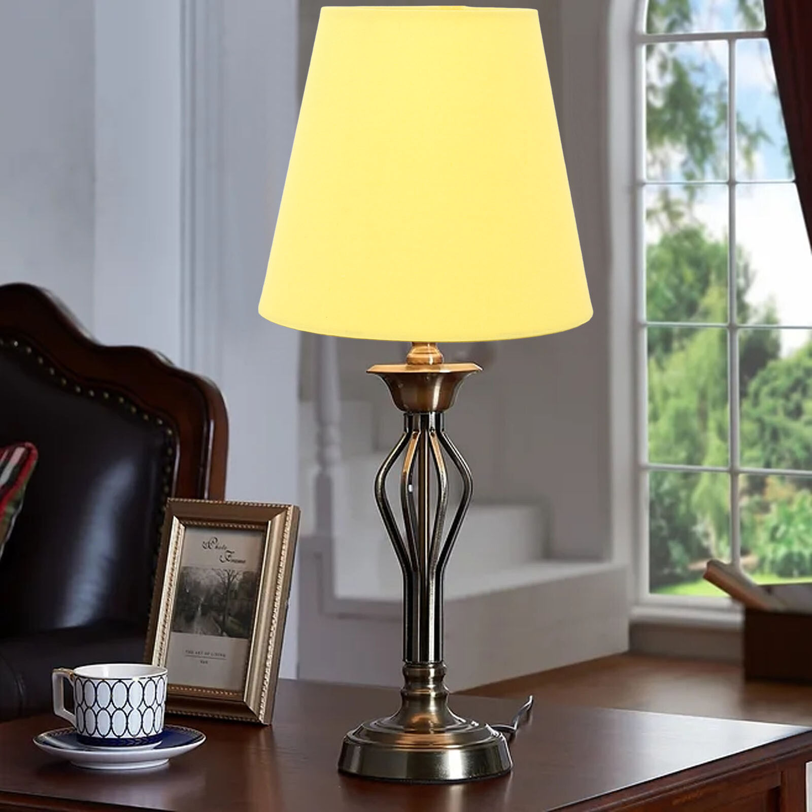 Uikdjgu 3X Fabric Chandelier Lampshade Holder Clip on Sconce Beside Bed Lamp Hanging Light, Light Yellow