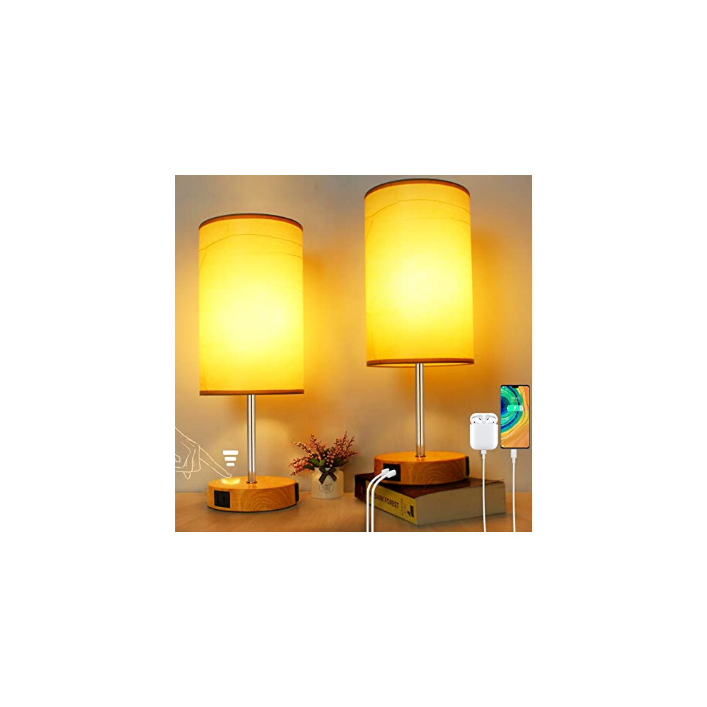 Wondlumi Bedside Lamps for Bedroom, Set of 2 Dimmable Table Light with 2USB Charging Ports,Modern Nightstand Desk Lamp with Yellow Lampshade for